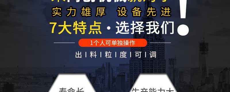 1、 機(jī)殼為雙層打造(外殼鋼結(jié)構(gòu)經(jīng)高強(qiáng)度焊接內(nèi)置反擊牙板>
