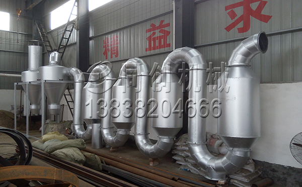 氣流式烘干機是指把粉粒體狀濕鋸末,采用螺旋輸送機將其連續(xù)加入干燥管內。在高速熱氣流的輸送和分散中,使?jié)裎锪系闹械乃终舭l(fā),得到粉狀或粒狀干燥產品的過程。主要由空氣加熱器、加料器、氣流干燥管、旋風分離器、風機等組成。
